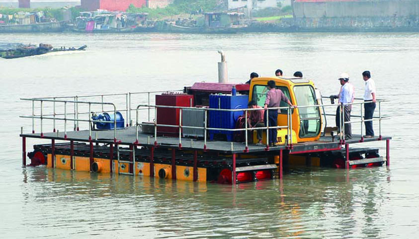 SLZZQYJ-002型水陸兩用沼澤牽引機(jī)是一種超低比壓的浮箱履帶式運輸機(jī)械。該機(jī)可自行出入泥沼、水域及河坡堤岸,并能在淺水中、泥沼地、陸地安全行駛。適用于灘涂地區(qū)、其他淺水或沼澤地帶的貨物運輸、石油勘探等。本機(jī)不允許在硬路面上長距離行駛或主航道上航行。故在設(shè)計上未考慮公路車輛行駛和船舶航行方面的有關(guān)規(guī)定和要求。