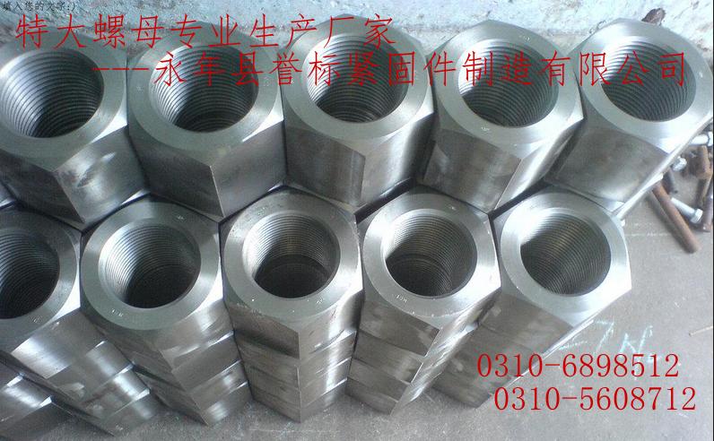 永年譽(yù)標(biāo)緊固件公司,生產(chǎn):大螺母、特大螺母、超大螺母、異型螺母、特大圓螺母、特大方螺母等各種螺母,聯(lián)系電話:0310-6898512或15100051712